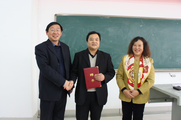 科研处刘中文处长为朱孔来教授颁发客座教授聘书