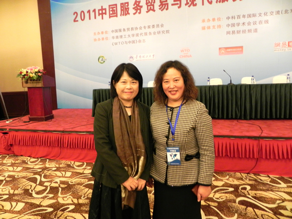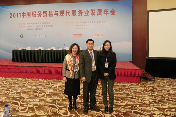 11月19-20日,由商务部中国服务贸易协会专家委员会主办的2011中国服务贸易与现代服务业发展年会在北京成功召开。来自国家商务部、国家统计局、北京大学、清华大学、台湾元智大学等服务贸易领域专家学者,以及网易财经频道、中国学术会议在线等媒体记者共310余位代表出席会议,共同探讨服务贸易现与代服务业的发展之方向。我院院长王爱英教授受专家委员会邀请率教师刘莹作为特邀嘉宾参加了本次年会,并就旅游行业服务水平创新,旅游业与其他服务业协同发展等问题与各位专家和学者进行了深入交流。
