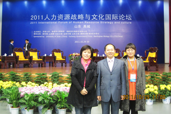 10月28~30日,由济南大学、澳大利亚Aussino Academic Publishing House、禹城市人民政府、保龄宝生物股份有限公司主办,济南大学管理学院承办的“2011人力资源战略与文化国际论坛”在德州禹城成功举行。来自美国、澳大利亚、加拿大、中国大陆、中国台湾等人力资源领域专家学者,山东省、德州市有关领导、企业界精英,以及新华网、光明日报、山东卫视等新闻媒体记者共300余位代表出席会议,共话人力资源管理创新之策,共谋文化大发展大繁荣之道。我校教师刘洪艳、王宇代表我校山东省“十二五”高等学校人文社会科学研究基地——女性人力资源开发与管理研究基地参加了此次论坛,并就基地建设、学科发展、人才培养等问题与各位专家和代表进行了深入交流。