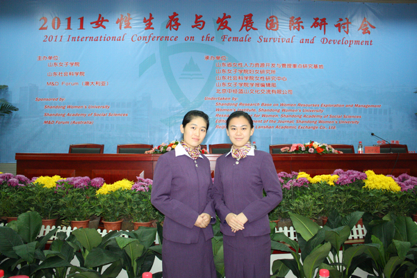 我院礼仪队为本次国际研讨会提供了高质量的会议服务和礼仪接待服务。学生凭借扎实的实践经验和过硬的服务技能,得到了大会的认可和参会来宾的赞扬,成为女院的一面鲜亮的旗帜。