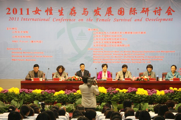 山东社会科学院副院长姚东方出席并讲话,全国妇联妇女研究所妇女理论研究室主任丁娟、全国妇联妇女研究所《妇女研究论丛》编辑部主任姜秀花研究员作主题报告。华东交通大学女性研究中心李东风教授、华中师范大学社会学院博士后李静博士、山东省社会科学院人口研究中心高利平副研究员、山东科技大学经济管理学院会计系主任、山东女子学院特岗教授张月玲教授等国内知名妇女理论专家应邀出席,并围绕“女性生存与发展”这一主题展开了研讨交流。四川省妇联副主席李泽影、学校领导以及来自厦门大学、同济大学、山东大学和全国各科研院所女性研究机构、妇联系统的有关专家、学者和研究人员150余人出席研讨会。