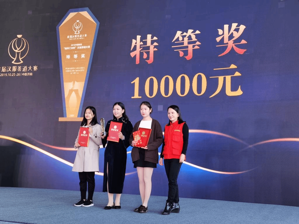 此次比赛得到了旅游学院领导的高度重视和大力支持,经过旅游学院张丽娜老师、魏越老师和李杨老师的前期策划、作品创编和精心指导,旅游学院派出的四支代表队经过激烈的初赛比拼,全部进入决赛环节。在决赛中各位选手发挥出色,从山东农业大学、济南大学、福建省福安市茶叶协会、北京华夏研会等26支参赛队伍中脱颖而出,获得了此次大赛的最高奖项——特等奖,以及两项卓越奖和一项优秀奖。比赛的四组作品将古典茶艺、历史故事、古代名人轶事巧妙地融入汉服茶道的演绎中,得到赛会评委的高度评价。