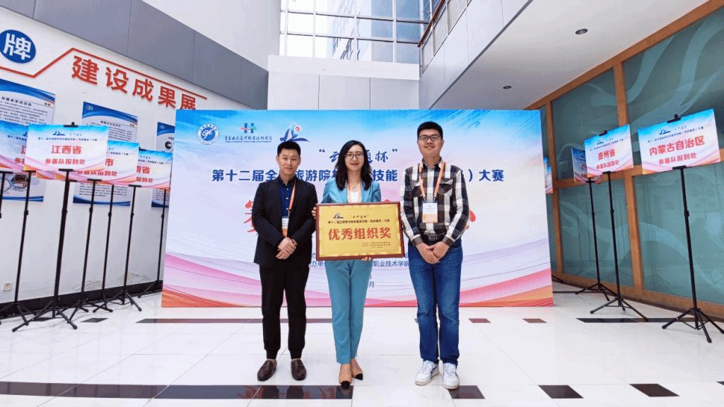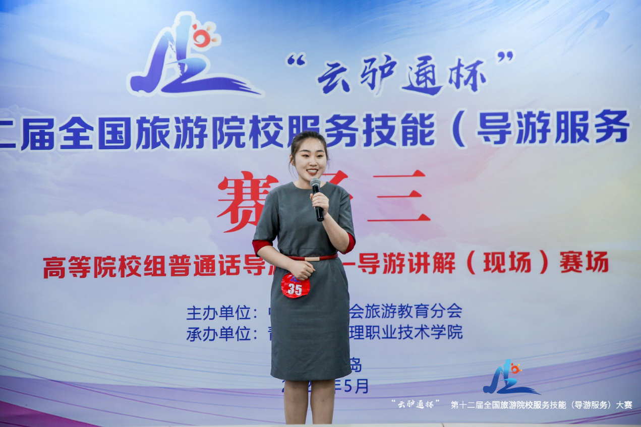 2021年5月13日至5月16日,旅游学院刘莹老师带队,张鹏、王晓伟随队带领旅游学院4名学生参加了第十二届全国旅游院校服务技能(导游服务)大赛,并获得优异成绩。本次大赛来自全国344所高校1200余名学生参赛,比赛包括理论考试、导游讲解、才艺展示等环节,经过激烈的角逐,我院来自2017级旅游管理本科班的郭泽清、2019级旅游管理本科班的郑龙悦荣获全国导游服务技能大赛中文导游组三等奖,2020级旅游管理专升本的李玉双、王玉丽荣获全国导游服务技能大赛英文导游组三等奖。两个月的准备,一个周的集训,三天的比赛,付出的汗水、泪水都将成为每位学生和指导老师成长的动力。