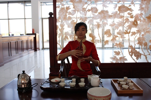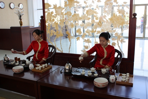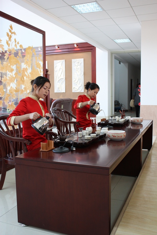 该中心的建设坚持茶艺实训的仿真性,环境布置突出传统文化氛围,设备齐全,完全能够满足学生的训练和职业培训要求。设备主要包括:泡茶台、茶凳、茶桌、茶椅、茶叶柜、服务台、沙发、茶几、饮水机、空调、音响设备等。同时,配备了齐全的泡茶和饮茶所用的器具及茶叶,在这里学生能够充分体会泡茶、品茶的全过程,品味中华民族博大精深茶文化的无穷魅力,并能够掌握乌龙茶、绿茶、花茶、红茶、普洱茶的冲泡和品饮方法,达到初级茶艺师的水平。