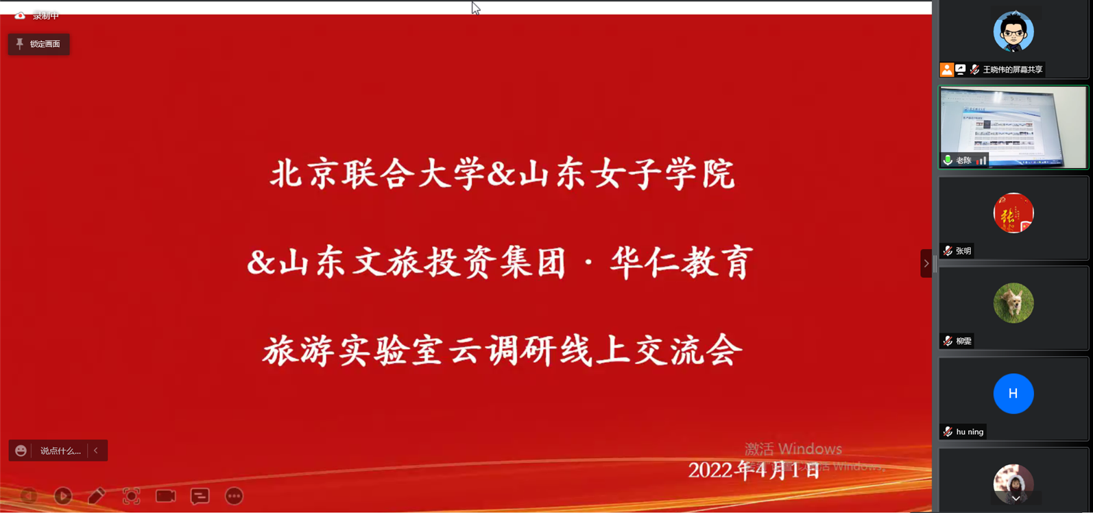 为加快旅游数字化实践数字化教学的转型,2022年3月18日-4月1日通过腾讯会议的方式分别召开了山东女子学院与海鳗云数据技术有限公司调研工作会议(以下简称“海鳗云调研会议”)、南开大学&山东女子学院&华仁教育旅游实验室云会议(以下简称“南开大学调研会议”)、北京联合大学&山东女子学院&山东文旅投资集团·华仁教育旅游实验室云调研会议(以下简称“北京联合大学调研会议”)以及华侨大学&山东女子学院&山东文旅投资集团·华仁教育旅游实验室云调研会议(以下简称“华侨大学调研会议”)。山东女子学院旅游学院院长张明、副院长许爱霞、院长助理王晓伟、旅游管理、会展经济与管理、酒店管理3个教研室主任、副主任及专业教师以及华仁教育产业学院校企工作室总监于倩出席了会议,南开大学、北京联合大学、华侨大学、山东文旅投资集团·华仁教育、海鳗数据技术有限公司部分成员参加了会议。