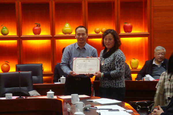 中国服务贸易协会专家委员会秘书长仲泽宇为王爱英教授颁发证书