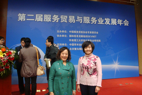 为加强服务贸易与服务业理论研究,提高我国服务贸易水平,“第二届中国服务贸易与服务业发展年会”于2012年11月23日—25日在北京顺利召开。来国家商务部、文化部、中国社会科学院、中国国际经济合作学会、首都经贸大学等服务贸易与文化产业领域的专家领导参加了此次年会。旅游学院王爱英教授作为中国服务贸易协会专家委员会理事应邀率教师刘妍参加了本次年会,并在会上担任嘉宾主持。