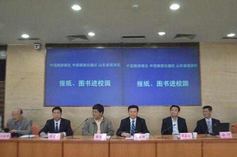 在活动现场,首先由中国旅游报社社长罗迪辉、山东省旅游局副局长周嘉禄等领导致辞,中国旅游报和中国旅游出版社的相关领导对参加此次会议的单位致谢。随后会议举行了报纸图书进校园仪式,参会领导为山东高校代表赠书。旅游图书报纸进校园活动可以开拓大学生的视野,同时为旅游行业的发展起到了积极的促进作用。我院参加此次活动也有利于增进学院同旅游相关报刊出版单位的关系,扩大了我院旅游类专业在全省旅游类院校中的影响。