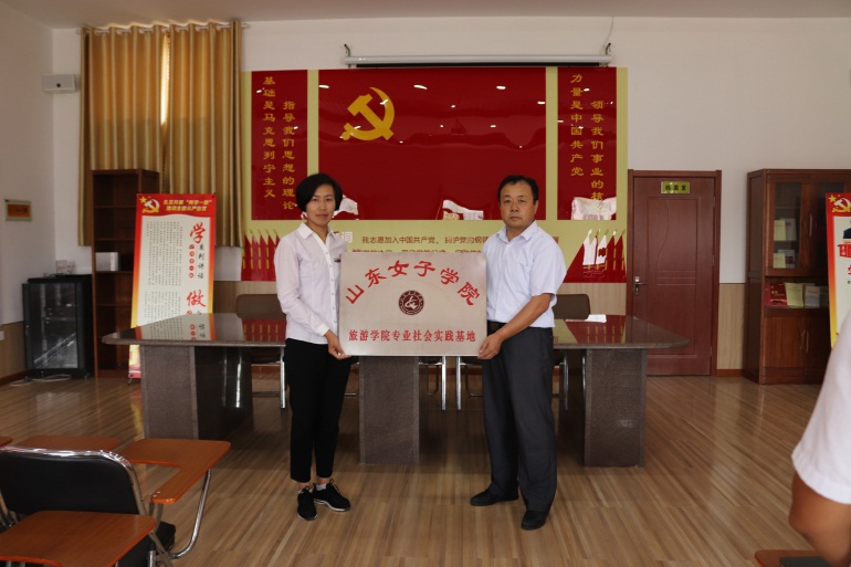 旅游学院张明院长慰问了三下乡的学生,高度赞扬了学院“旅农于心”小分队奉献、团结、互助、进步的精神和热心的服务态度,感谢万德镇马套村为旅游学院学生提供了一个服务社会、锻炼自己的实践平台。最后旅游学院张明院长同合作社负责人薛经理为山东女子学院旅游学院专业社会实践基地揭牌。