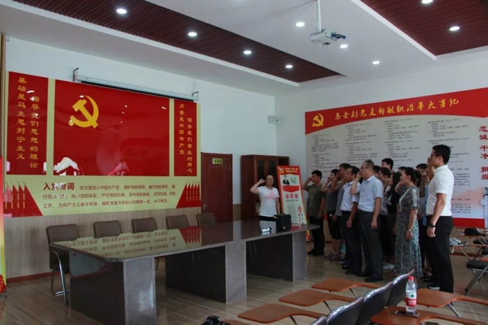 在马套村党员活动中心,旅游学院党总支面对党旗重温党的誓词,不忘初心,砥砺前行。马套村党支部委员兰相红详细讲解了马套村基层党组织的建设情况,强调党支部强有力的带动是马套村发展的动力,讲述了五任领导班子的发展脉络、建设成就以及村内的基本的养老政策、教育投入等。
