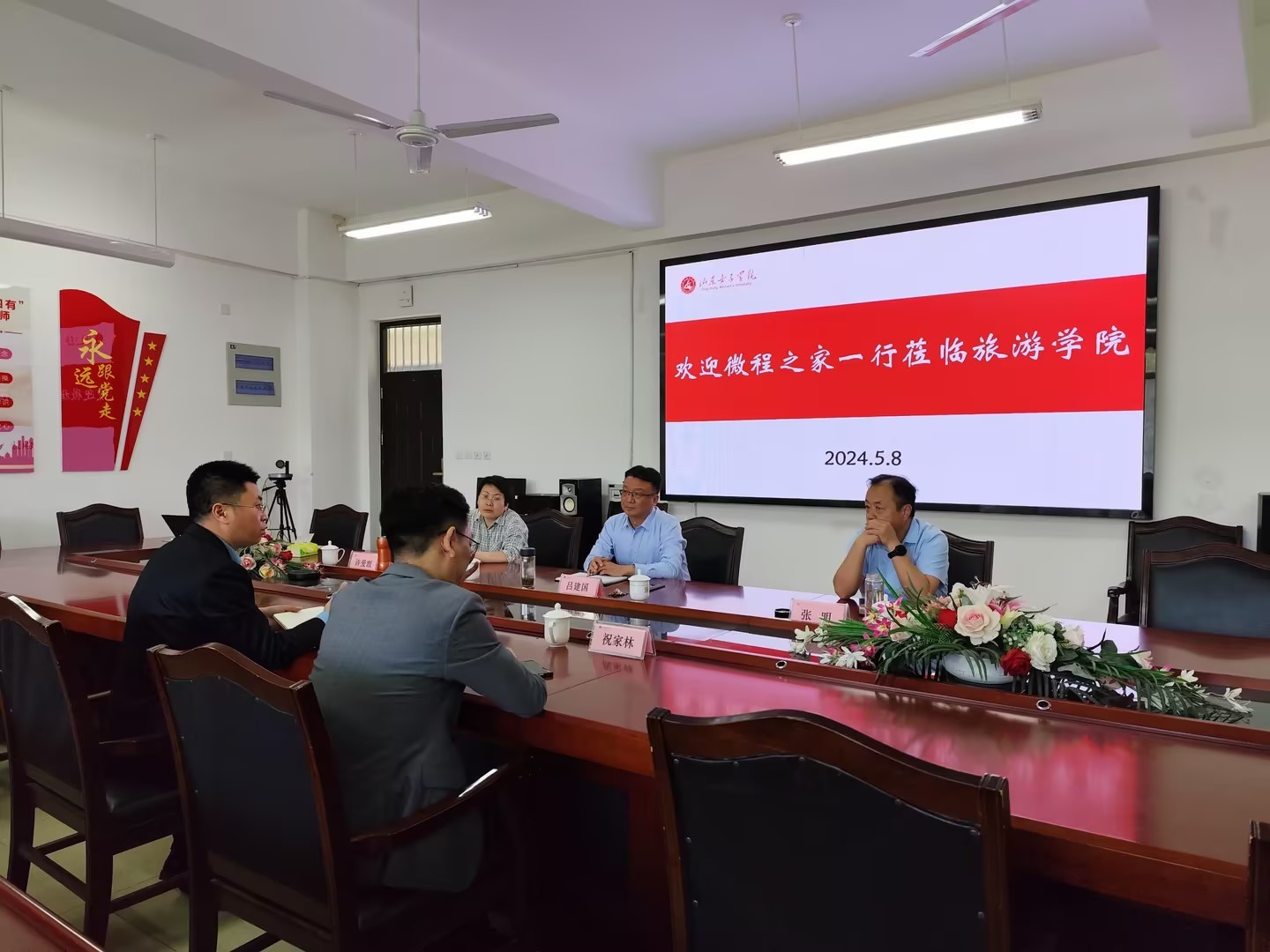 座谈会上,吕建国对微程之家一行表示热烈欢迎,并简单介绍了学院的基本情况和近几年取得的办学成绩。祝家林总经理介绍了微程之家在校企合作方面的优势和前期合作的成功案例,双方就微专业建设、师资顶岗实践、课题联合申报、学科竞赛、实训基地建设等方面进行了深入交流。双方表示,将发挥各自人才、智力、技术优势,加强合作,共同提升旅游专业人才培养质量。