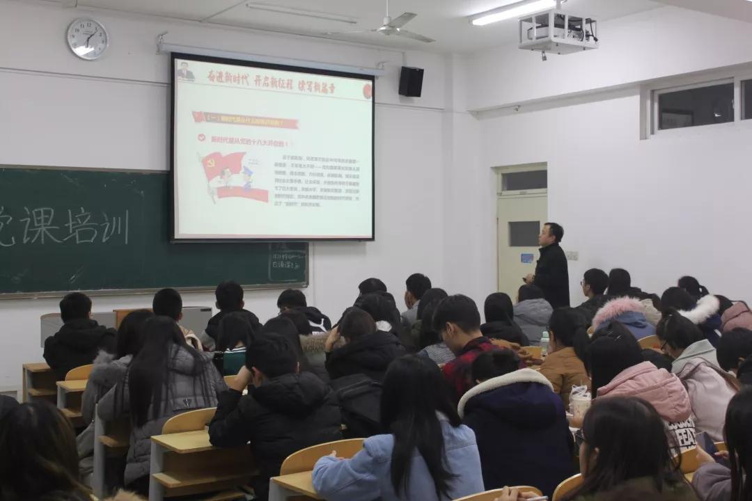 11月22日晚,旅游学院院长张明在博学楼104,为18级旅游管理专科专业学生开展,以“坚定信念,修德成才,争做新时代文明大学生”为主题的党性教育课程培训。