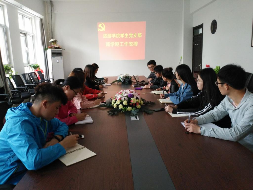 3月13日下午,旅游学院学生党支部在博雅楼A301会议室召开新学期工作安排会议,此次会议由旅游学院学生党支部书记赵贵阳主持,全体在校学生党员参加。
