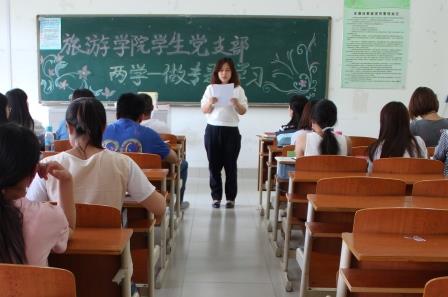 2016年5月19日星期四下午,旅游学院学生党支部在普教楼202举办学习习近平总书记关于“两学一做”学习教育的重要指示。旅游学院党总支书记、学生党支部书记、委员及各班学生党员参会。