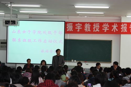 仪式上,党总支副书记兼副院长张明副教授宣读了中共山东女子学院委员会《关于处级领导干部联系学生班级工作的实施意见》(试行)。副院长李黎明教授介绍山东女子学院各位处级领导,以及领导所联系学生班级。处级干部代表王全宾处长就处级干部联系班级工作作了表态发言。