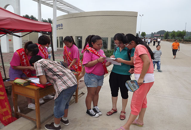 7月19日,团队成员前往沂水县荧光湖景区,与山东龙冈集团驻景区负责人进行交流。通过交流,最终将活动宣传的地点定在景区的游客中心门口,此处是游客接待休憩处,聚集人员较多,宣传更易广泛普及。7月20---21日,团队成员在景区派发宣传单页、举行签字活动,号召游客加入自觉保护环境的行列中来,共同传递绿色生态旅游理念。尽管天气十分闷热,但队员们的工作热情高涨,充分展现了女院学子良好的精神风貌。7月22日,团队成员前往举行授牌仪式的地点,与工作人员一起布置授牌仪式场地。10点钟按时举行授牌仪式,仪式由双方领导参加,团队成员主持,良好的启动仪式,为活动的开展和双方的交流合作奠定了良好的基础。