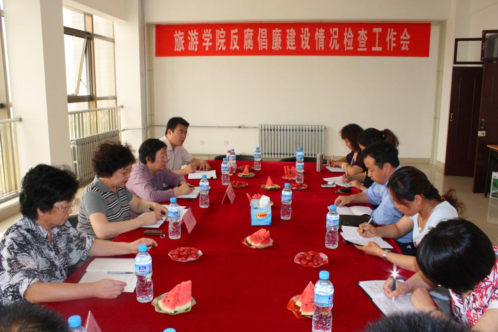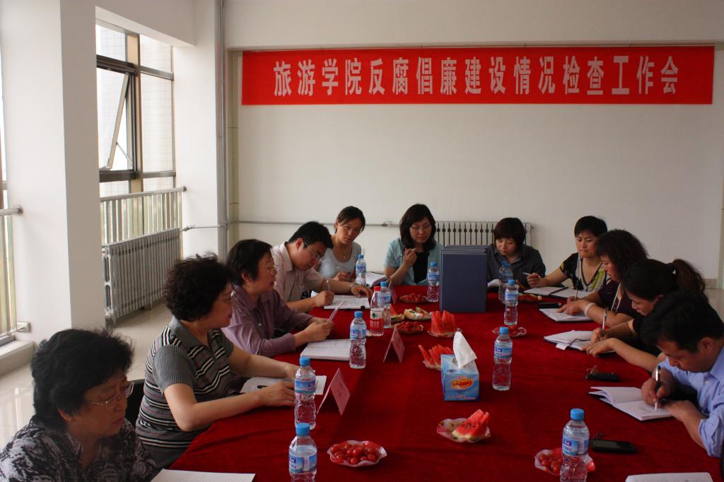 2011年5月30上午,在学校纪委书记汪琦同志的带领下,学校反腐倡廉工作领导小组来到旅游学院。学校纪委副书记张勤同志主持了本次检查评估工作。我院党总支成员和党员、教师代表参加了座谈会。