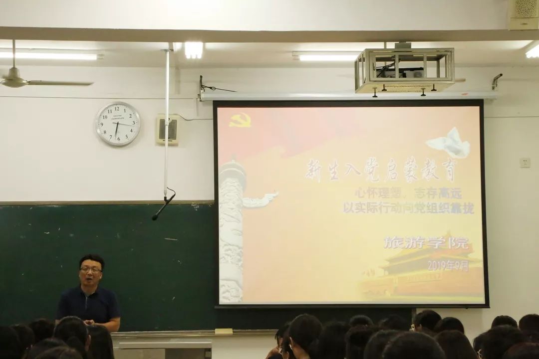 9月5日晚,旅游学院党总支书记吕建国,党总支副书记孔晓晓,分别在2019级新生中开展以“心怀理想,志存高远,以实际行动向党组织靠拢”主题的新生入党启蒙教育。