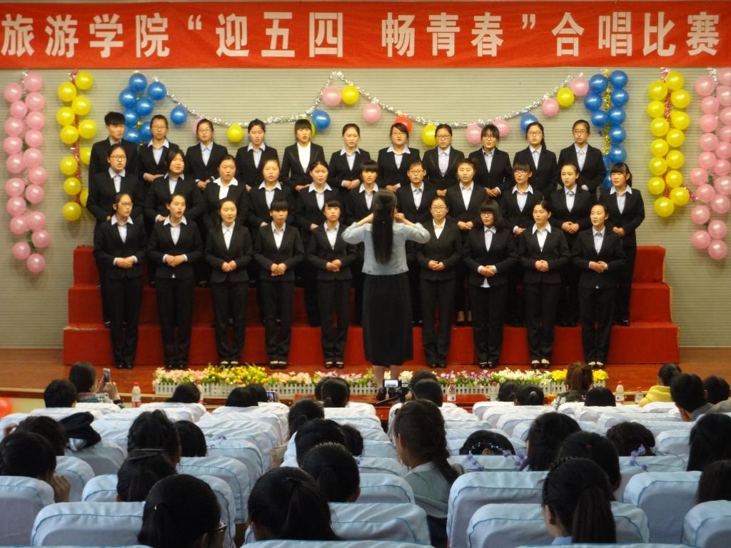 合唱比赛由必唱和自选歌曲组成。校歌《山东女子学院之歌》是必唱曲目,在激越的催人奋进的校歌声中,同学们的爱校之情汹涌澎湃,对学校的认同感不断升腾。比赛中,动听的歌声配上精彩的舞蹈,再结合着优美的诗歌朗诵,给我们带来了视听的盛宴。最终,旅游管理1402班获得此次比赛的冠军,陈艳楠获得最佳指挥奖。