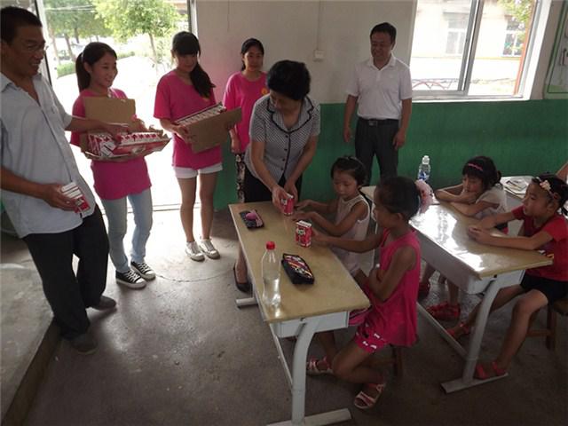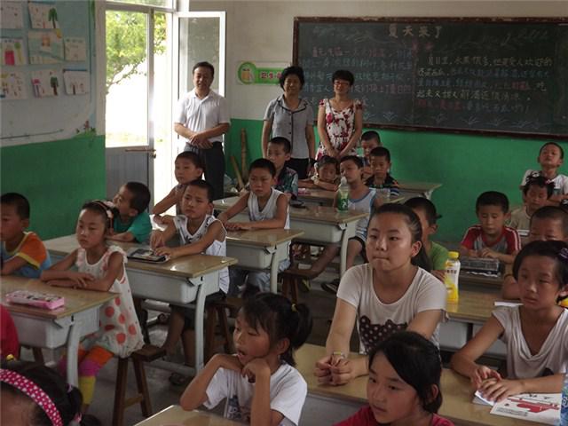 支教活动的顺利开展,受到了山东女子学领导的高度重视,7月22日上午,山东女子学院副院长宋兆静在旅游学院领导的陪同下来到“爱在路上”团队支教地济南市平阴县东平洛小学进行视察。双方校领导一见面就进行了深切问候,并对支教队员进行了的真诚慰问。课间,宋院长在旅游学院领导的陪同下,来到教室给孩子们送来了最真切的关怀,并对小朋友们说:“我可爱的孩子们,见到你们我非常的高兴,天气太热,小朋友们一定要注意多喝水、注意安全、注意防火,刚才看见你们做的手语《感恩的心》、跳的舞蹈都特别棒。”宋院长简短亲切的话语,包含了对孩子们满满的关怀。