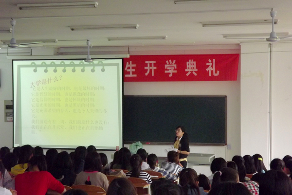 2012年9月27日星期四下午两点,旅游学院“新环境新视野新起点-大学新生心理适应讲座”在合班楼110教室召开,旅游学院张扬老师为2012级新生做了心理健康讲座,旅游学院全体大一新生参加了此次活动。