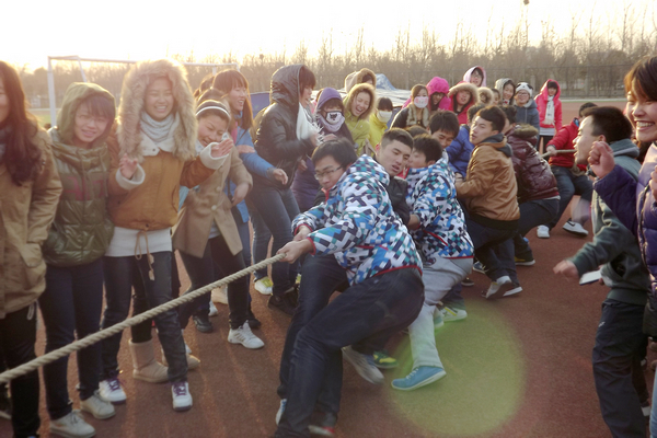 2012年12月6日下午三点半,校庆杯拔河比赛在操场举行,此次比赛由旅游学院举办,本次比赛旨在培养同学团结协作、拼搏进取的集体主义精神。参赛者为旅游学院2011级与2012级同学,旅游学院党支部书记张明、团支部书记方莹、辅导员张扬老师观看了此次比赛。