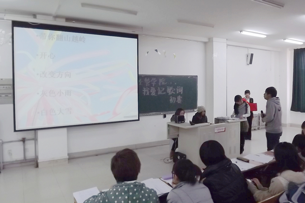 2011年11月24日下午13:30,由经管学院举办的“我爱记歌词”比赛在合班楼310教室隆重举行。我院康凯、陈平、孔张艺、周杨、刘晓婷五名同学参加了此次比赛,并在初赛中取得优异成绩,成功晋级决赛。
