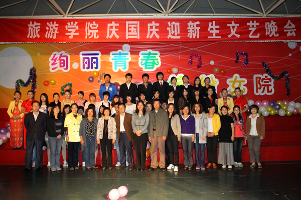 9月28日晚,旅游学院“迎新生,庆国庆”联欢晚会在大学生活动中心成功举行,校党委副书记宿建沛,副院长王淑霞,旅游学院负责人与2011级新生欢聚一堂,共同观看了由学生和教师精心编排的精彩节目。