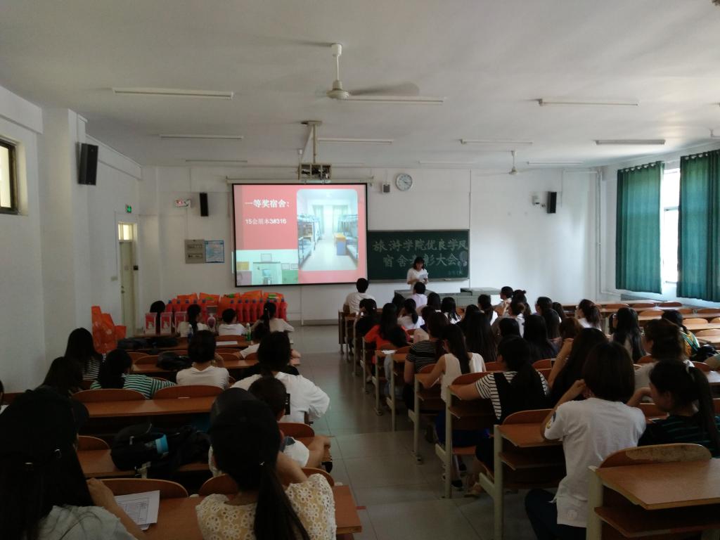 6月1日下午,旅游学院在博文楼103召开本学期优良学风宿舍颁奖大会,表彰在学风建设、宿舍安全和卫生方面表现突出的宿舍。学院党总支书记张明、辅导员、2015级2016级学生宿舍舍长和部分学生参加。