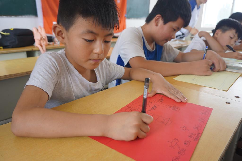 在做完自我介绍后,团总支书记方莹老师和成员们开始为孩子们上英语课,并带领孩子们玩击鼓传花的游戏,寓教于乐,让孩子们深深体会到学习的快乐。成员们被孩子们的纯真所深深感染,支教热情也愈发高涨。在室外课堂上,成员们和孩子们一起踢毽子、跳绳、切磋拳法;手工课堂上,大家一起用太空泥捏出一件件生动有趣的作品,教室内充满了欢声笑语,幸福洋溢在孩子们的脸上。