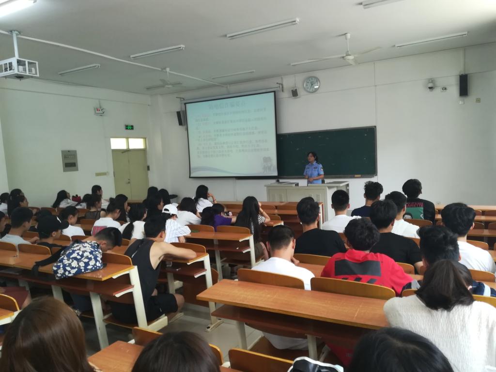 安全讲座中,民警从交通安全、用电安全、网络交友安全、防盗窃等方面向学生们讲解了安全注意事项。民警结合学生们的生活学习情况,重点强调了住宿用电用火安全、宿舍放盗窃安全、网络诈骗安全,并通过大学城各高校事故案例,使学生们了解了各类案件的严重后果和惨痛教训。