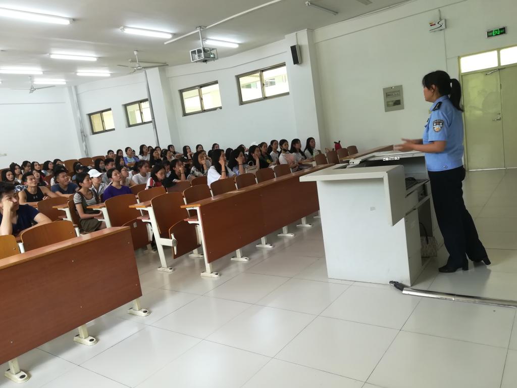 为促进校园安全,提高师生的校园安全意识,有效防范校园安全事故的发生,为学生们营造良好的学习环境。5月17日下午,大学路派出所民警刘巧走进旅游学院,开展校园安全知识讲座,学校保卫处副处长谢德宽及旅游学院2017级空乘专业学生参加了此次活动。