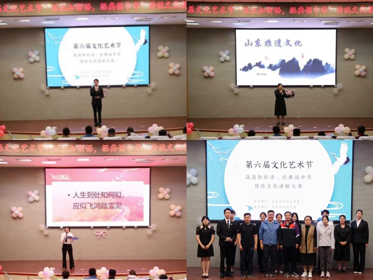 2023年5月25日,山东女子学院第六届文化艺术节之“汲汲知新语,经典诵中华”传统文化讲解大赛决赛在图书馆一楼报告厅顺利举办。此次比赛由校团委主办、旅游学院团总支承办。