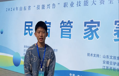 近日,由山东省人力资源和社会保障厅主办,青岛幼儿师范高等专科学校承办的山东省“技能兴鲁”职业技能大赛——全省文旅系统职业技能竞赛民宿管家技能竞赛决赛在青岛圆满落幕。来自济南大学、曲阜师范大学、青岛酒店管理职业技术学院等省内多所本科、高职院校及企事业单位的180余名选手报名参赛。旅游学院会展(校企)22级的黄贺,经过多轮比拼,在决赛中荣获一等奖。