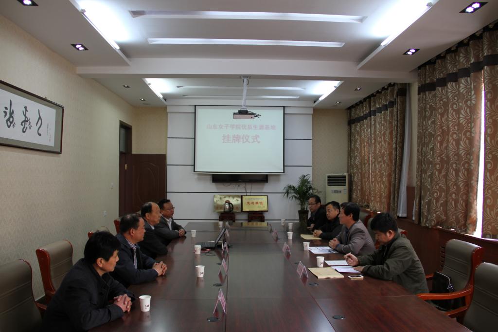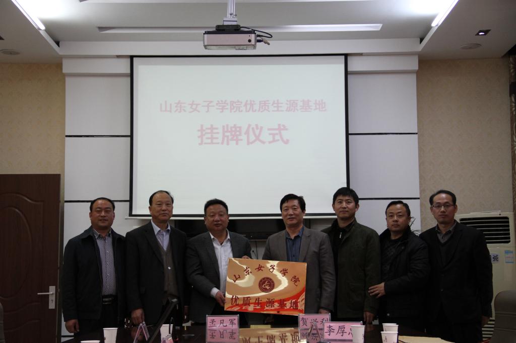 座谈会上,贺兴利介绍了学校的发展历程、学科专业设置以及教学科研、学生就业等方面的成果,希望通过优质生源基地建设,在学校和各地市中学之间架起一座新的桥梁,推动双方在学生培养、教师培训、素质拓展等方面的交流互动,实现共同发展目标。随后,招生就业处姚树欣处长就2015年山东女子学院招生的相关事项作了说明,并表示学校将为优质生源基地提供高招政策辅导解读、学生报名指导等便利条件。郓城高级中学领导表示,优质生源基地的建立,是山东女子学院对高级中学教育教学质量的肯定和认可,并表示本着“合作、双赢”的原则,认真落实协议承诺,培养特色人才,为我校输送更多的高素质生源。