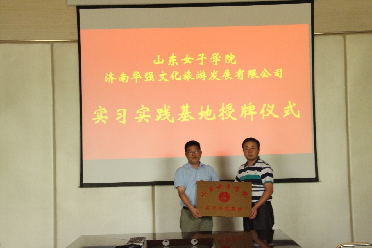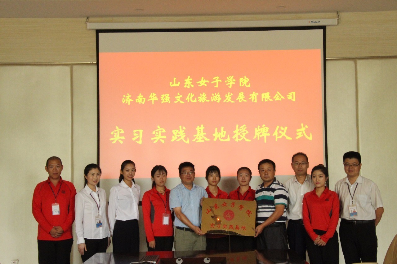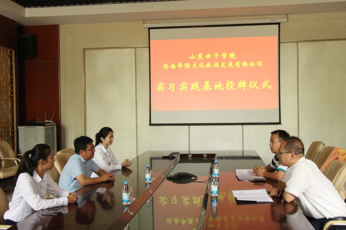 2016年7月27日,山东女子学院与济南华强文化旅游发展有限公司“实习实践基地授牌仪式”,在济南方特东方神画会议室举行。济南华强文旅公司总经理李志波,副总经理刘佳,人力资源部副部长牟慧,山东女子学院旅游学院党总支书记张明,副院长李厚忠及女子学院实习生代表参加了本次授牌仪式。