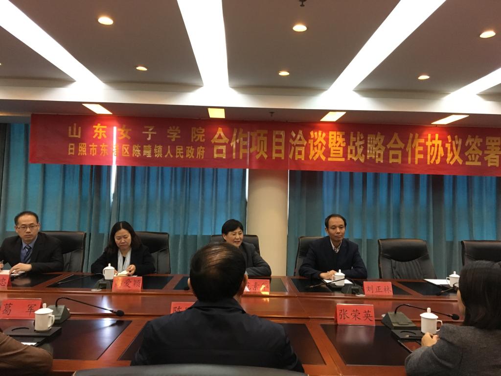 2017年3月30日上午,我校与日照市东港区陈疃镇政府签署了战略合作协议,标志着旅游学院与日照市东港区合作的首家镇域旅游发展研究院正式“落户”陈疃。学校党委副书记、院长范素华,党委委员、副院长刘正林,旅游学院院长高爱颖,日照市旅游发展委员会党组副书记、调研员张荣英,东港区人民政府党组成员陈国祥,陈疃镇党委书记赵东波等出席了签约仪式。