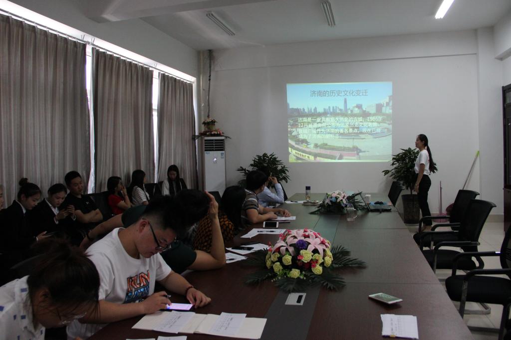 本次决赛共有九支参赛队伍,各组同学身着正装,准备充分,蓄势待发。其中名为故宫讲坛的导游团,佩戴着象征身份的工牌,讲解可谓精彩绝伦;对口本的three团队同样不甘示弱,充分展现了他们的专业程度,让人赞叹不已;其他小组的展示同样也让观众身临其境、掌声一片。经过激烈的比拼,最终评出一等奖:铿锵玫瑰队、二等奖:思学团队、Three团队、三等奖:联合国委员会、432旅社、视觉蔓延团队以及最佳人气奖、最佳创意奖、最佳形式奖等不同奖项。最后由辅导员赵贵阳老师对本次活动做总结发言。