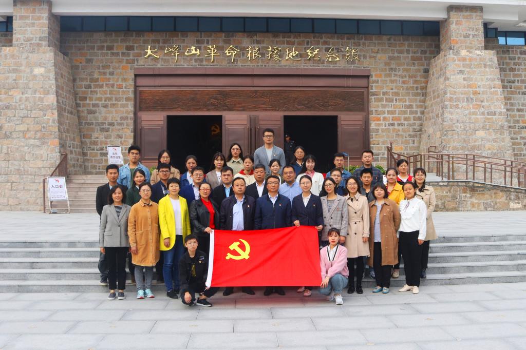 旅游学院党总支全体同志在讲解员的引导下参观学习了大峰山革命根据地纪念馆,认真聆听解说员讲述抗日战争时期、解放战争时期长清共产党的英勇事迹。全体成员在初心广场重温入党誓词,铿锵有力的誓言表明了大家坚定为党的事业奋斗终身的勇气和决心。