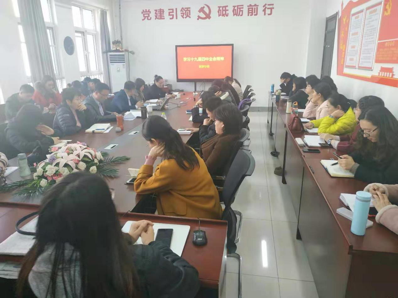 2019年11月14日上午,旅游学院全体教职工在博雅楼A301学习贯彻党的十九届四中全会精神。吕建国同志主持本次学习。