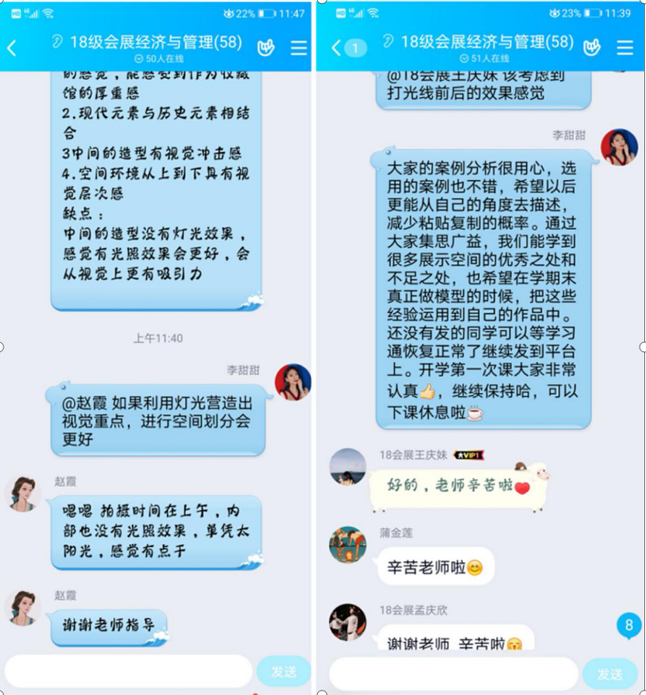 李甜甜老师为了给学生营造开学的仪式感,让大家尽快找回“课堂感觉”,提前精心录制了一段问候视频,在课前10分钟发在群里互动,来调动学生们的学习兴趣,同学们纷纷互动点赞,学习群内气氛十分活泼。