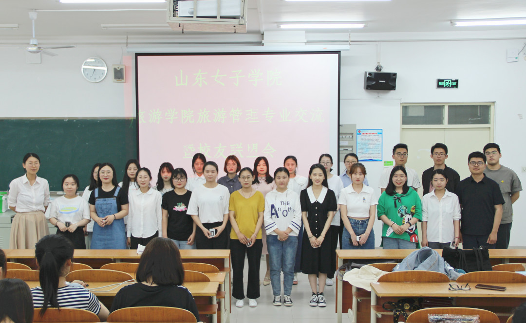 此次会议邀请了三位从事旅游行业的往届毕业生,山东齐鲁风情国际旅行社总经理倪立芹,山东青年政治学院教师邢琦娜,马邑博物馆讲解员、广西师范大学在读研究生马紫薇,她们通过现场连线的方式给同学们讲述了宝贵的旅游从业经验。