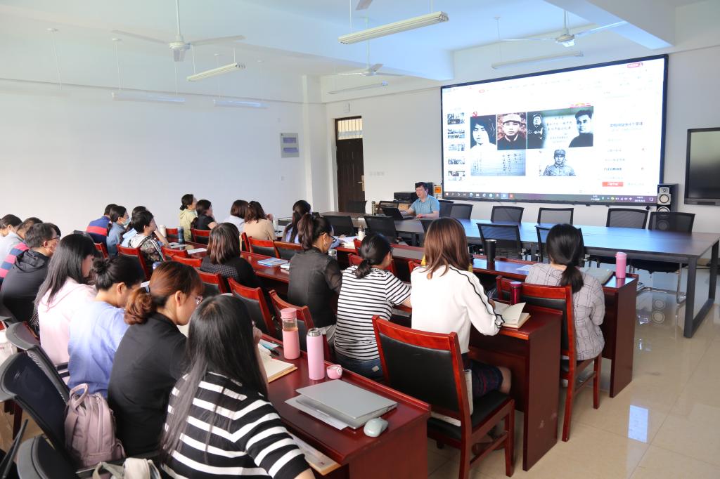 宋志东老师从“人民性是中国共产党的本质特征”、“入党就是为人民牺牲和奉献”、“历史和人民选择了中国共产党”三个方面,对中国共产党的历史进行了系统全面的讲述。宋老师深情地讲述了一个个感人的革命英烈故事,使全体教职工重温了党的光辉革命斗争史,也感受了伟大的革命精神。