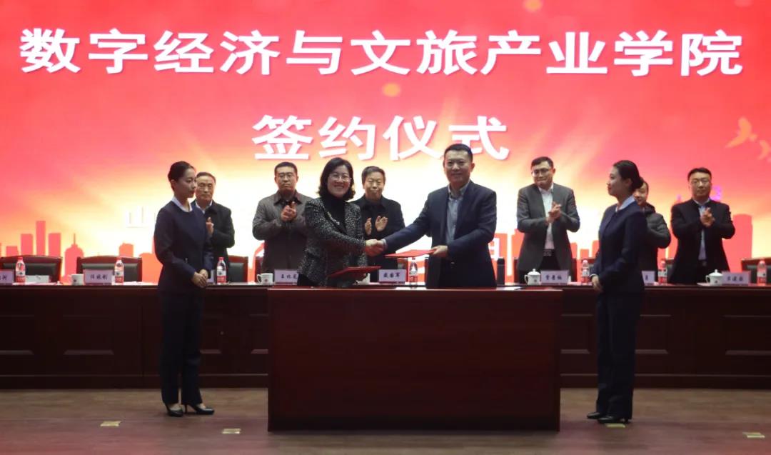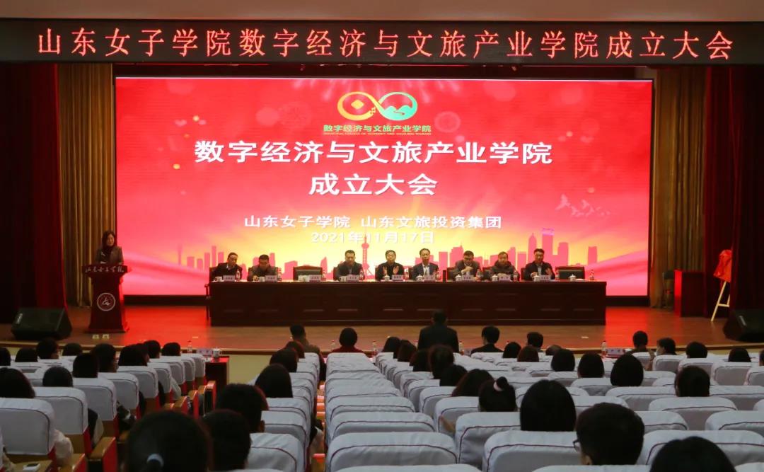 2021年11月17日,山东文旅投资集团有限公司(以下简称“山东文旅投资集团”)与山东女子学院共建“数字经济与文旅产业学院”揭牌仪式在山东女子学院举行。山东省国欣文化旅游发展集团有限公司党委副书记、总经理丁艺,山东文旅投资集团有限公司党委书记、董事长王化龙,山东文旅集团创业投资有限公司董事长、山东华仁教育发展有限公司董事长贾景梅,山东华仁教育发展有限公司总经理张俊建,山东女子学院党委副书记、校长盛国军,山东女子学院副校长刘恩允,山东女子学院教务处处长穆勇,山东女子学院招就处处长任晓剑,山东女子学院科研处处长刘进军,山东女子学院经济学院院长沈传河,山东女子学院旅游学院党委书记吕建国等人出席仪式。