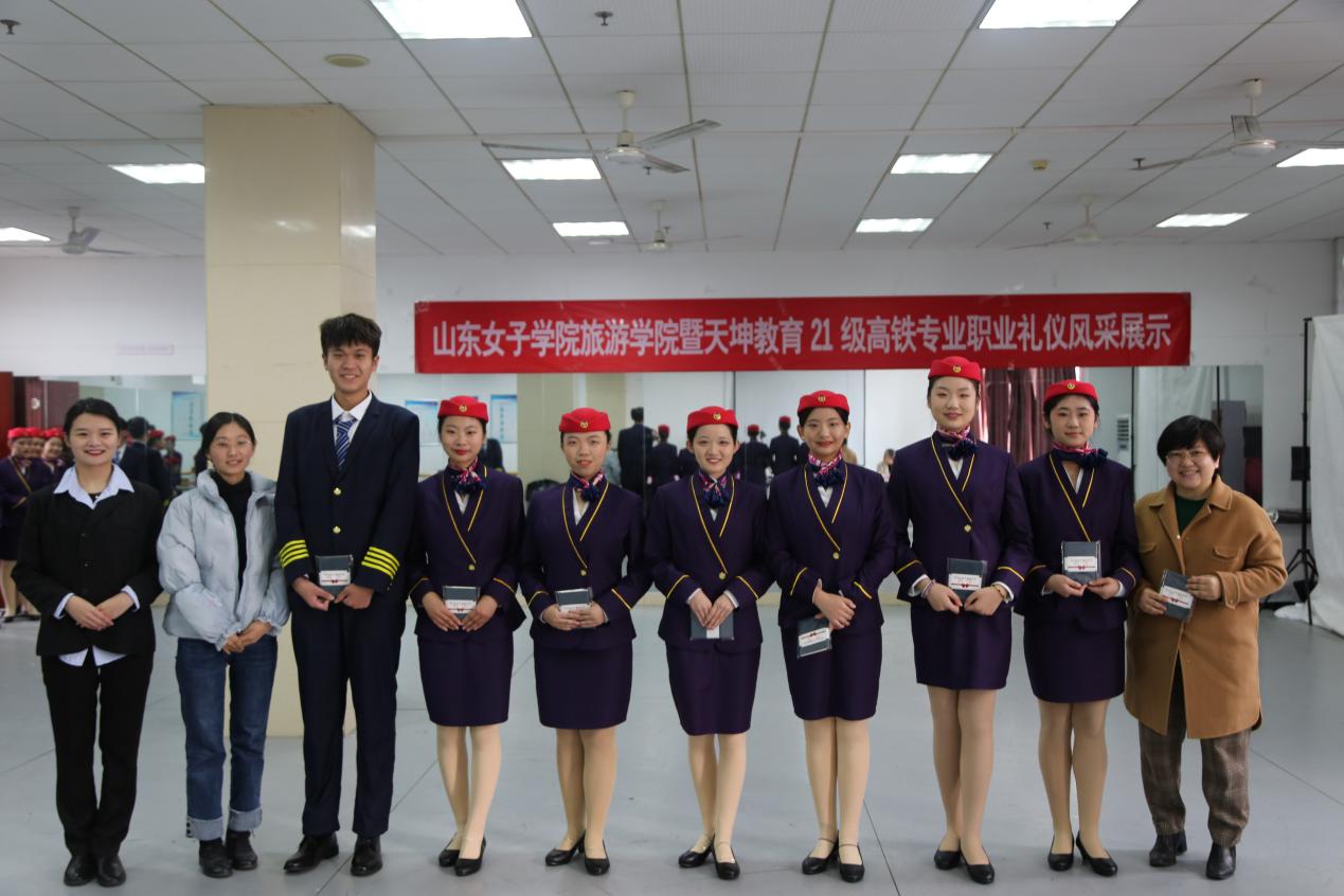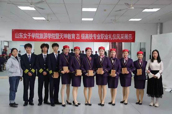 12月9日,上海天坤国际教育集团携手山东女子学院旅游学院组织2021级旅游管理专业(高铁运营与管理方向)学生举办了第二届“展礼仪文化,现职业风采”为主题的职业礼仪展示活动。