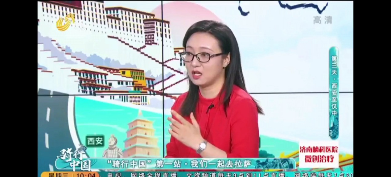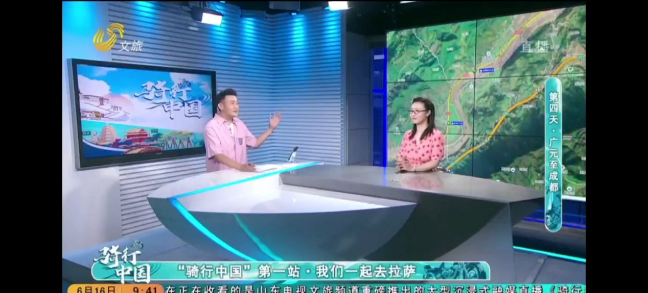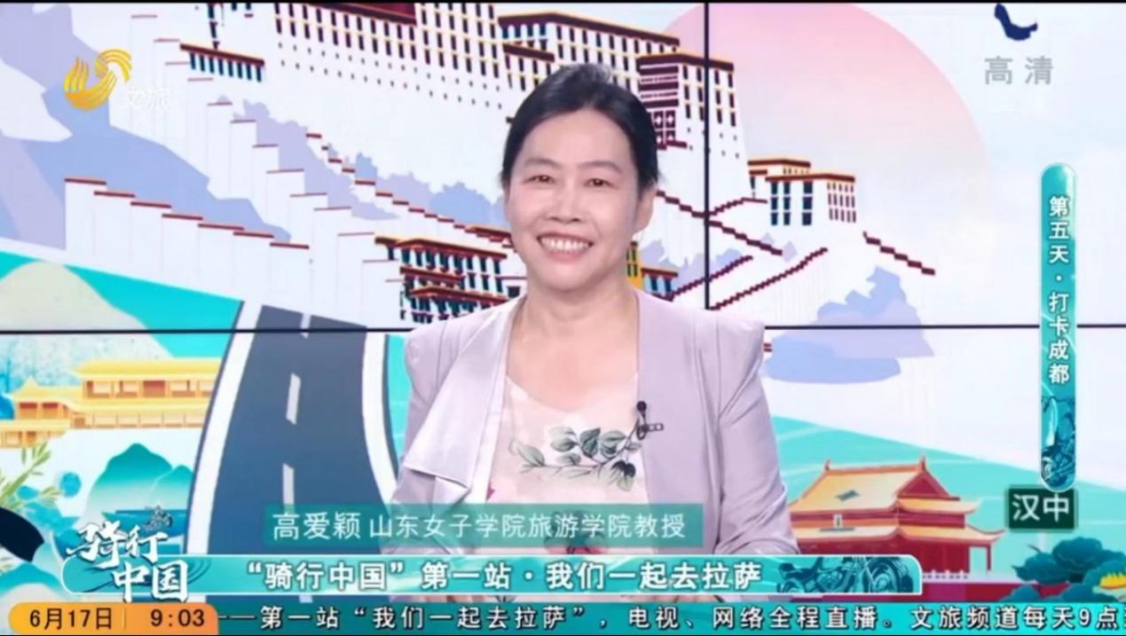“骑行中国”是山东电视文旅频道联合闪电新闻策划的大型沉浸式融媒直播栏目,6月13日起,连续15天山东电视文旅频道电视端、央视频、新华网、闪电新闻APP、文旅慢直播、抖音、快手、视频号、新浪微博等网络平台、电视、网络全程直播,日网络平均观看点击量达800万人次,高爱颖和刘莹两位老师应“骑行中国”栏目组邀请参与节目录制,既体现了我校旅游学院在山东省文旅系统的知名度,也体现了两位老师深厚的学术功底与综合素养。