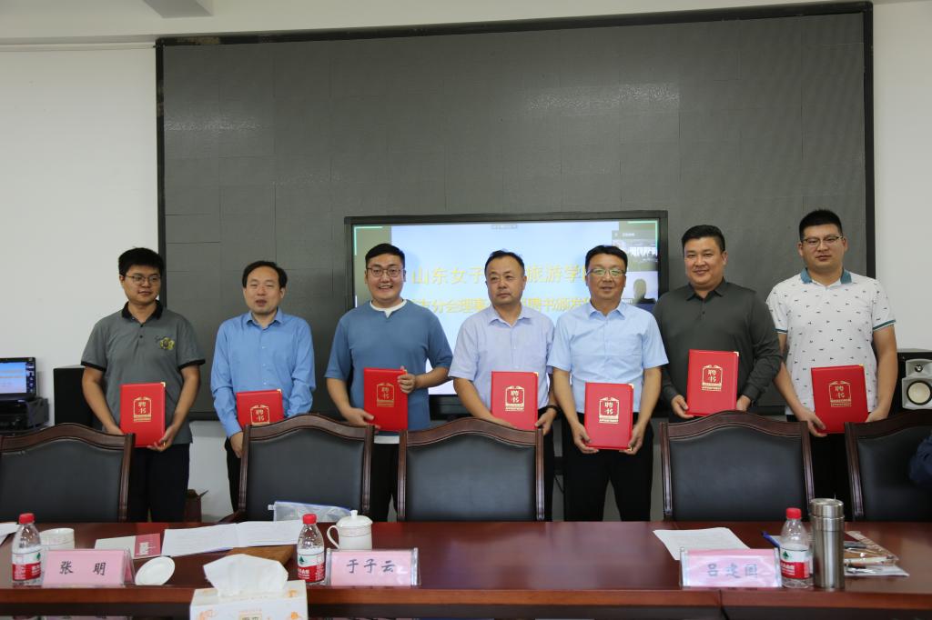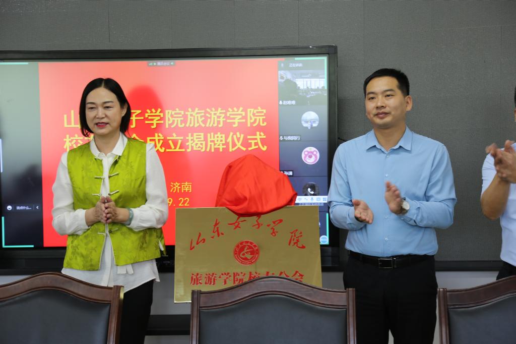 于子云处长和校友代表刘超共同为山东女子学院旅游学院校友分会的成立揭牌。
