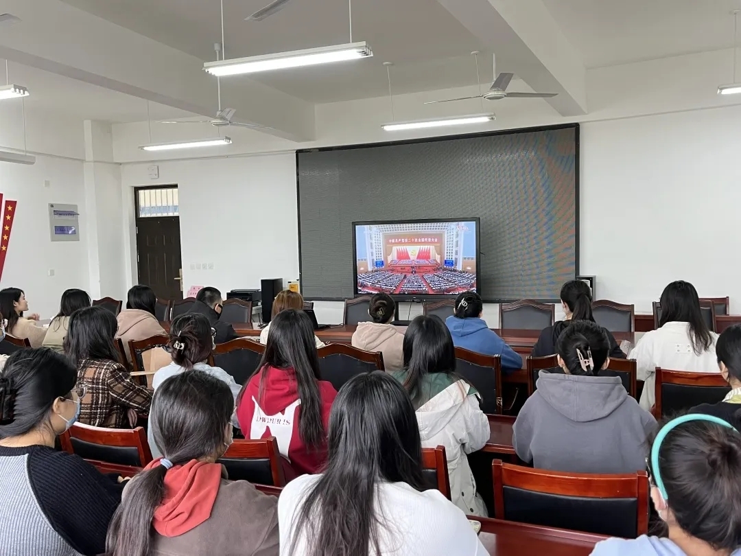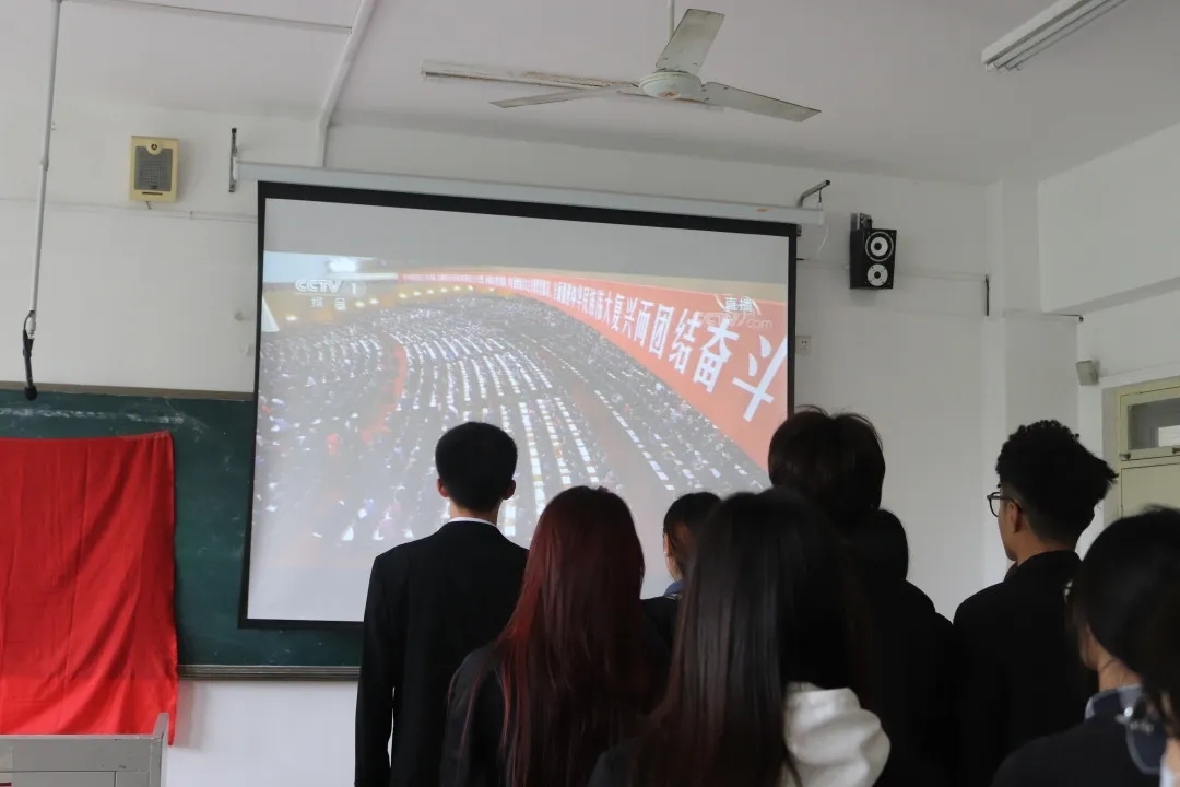 旅游学院组织学生党支部、学生干部、各班团支部观看二十大开幕盛况。