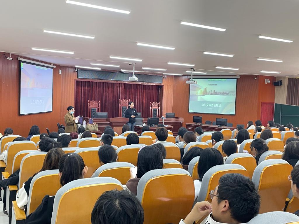 2022年10月27日,酒店管理专业教研室邀请山东文旅集团收益总监徐蕊女士以《高星级酒店销售中的三大灵魂人物》为主题,为2022级酒店管理专业和旅游管理专业学生做了一场精彩的讲座。