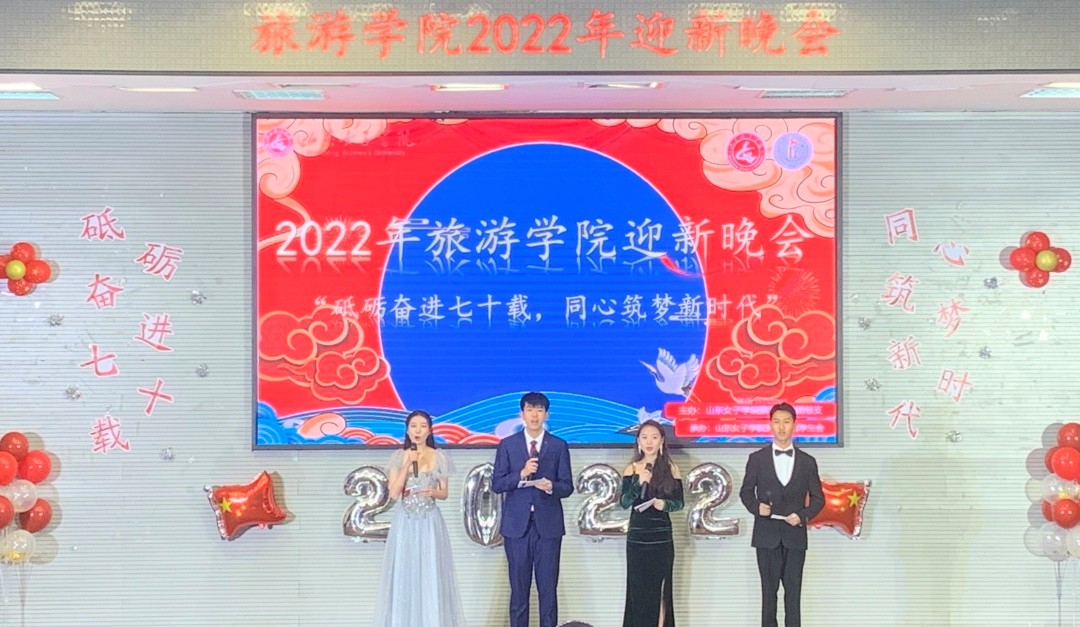 在旅游学院师生的热烈掌声下,四位主持人精神饱满,盛装上台,举手投足尽显女院风采。下面迎新晚会正式开始!